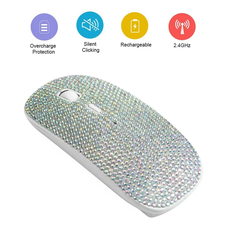 Diamond Mouse Raton 2.4G Wireless Rechargeable USB for PC Laptop Gaming Computer Mice Crystal Sem F